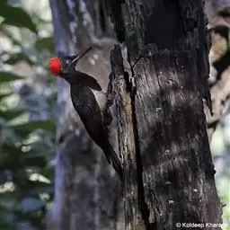 黑啄木鸟属䴕形目、啄木鸟科,是一种大型的啄木鸟,体长45-47厘米,翼展64-68厘米,…