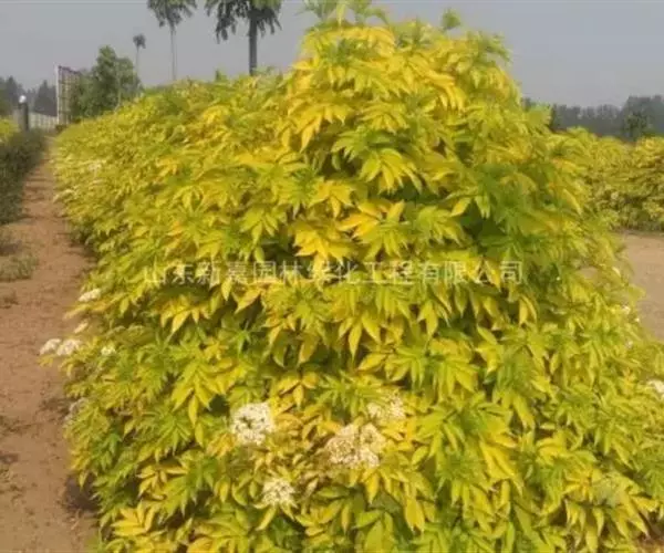 金叶接骨木(Sambucus racemosa ‘Plumosa aurea’),别名“公道老”,是忍冬科(Caprifo liaceae)接骨木属(Sambucus)多年生落叶灌木。因其具有树姿优美、花色艳丽,耐寒冷、贫瘠,生命力顽强等诸多特点,广泛应用于街头的基础种植,园林的孤植、丛植、群植等 。