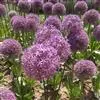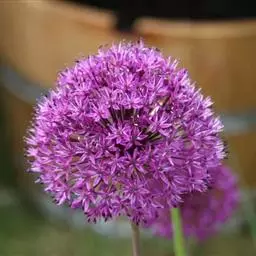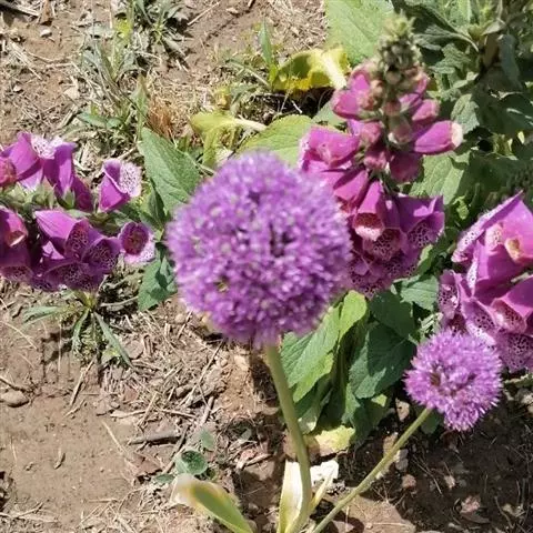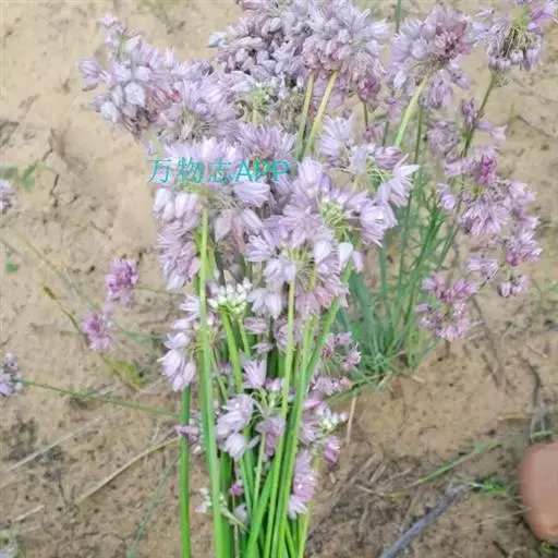 花葶圆柱状,高10-30厘米,下部被叶鞘;总苞单侧开裂,宿存;伞形花序半球状至球状,具多而通常密集的花;小花梗近等长,从与花被片近等长直到比其长1倍,基部无小苞片;花淡红色、淡紫色至紫红色,大;花被片卵状矩圆形,长6-9毫米,宽3-5毫米,先端钝圆,内轮的常比外轮的长;花丝近等长,为花被片长度的1/2-2/3,基部合生并与花被片贴生,内轮的基部约1/2扩大成卵形,外轮的锥形;子房倒卵状球形;花柱略比子房长,不伸出花被外。