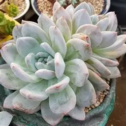 大和锦是景天科拟石莲花属的多肉植物。肉质叶排成紧密的莲座状,广卵形至散三角卵形,背面突起呈龙骨状,…