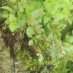 风轮菜 性状鉴别 茎呈四方柱形,直径2-5mm,长70-100cm,节间长3-8cm;表面棕红色或棕褐色,具细纵条纹,密被柔毛,四棱处尤多。叶对生,有柄,多卷缩或破碎,完整者展平后呈卵圆形,长1-5cm,宽0.8-3cm,边缘具锯齿,上面褐绿色,下面灰绿色,均被柔毛。轮伞花序具残存的花萼,外被毛茸。小坚果倒卵形,黄棕色。全体质脆,易折断与破碎,茎断面淡黄白色,中空。气香,味微辛。