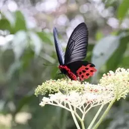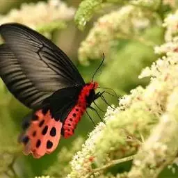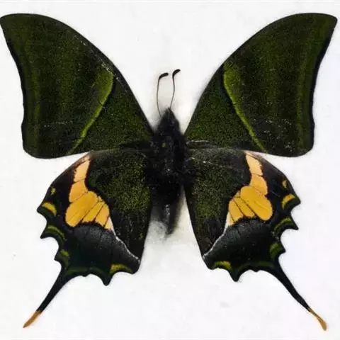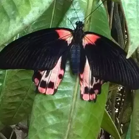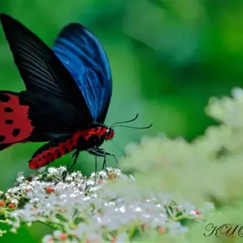 曙凤蝶是凤蝶科、曙凤蝶属蝴蝶。体背黑色,头、颈、胸侧及腹侧具红色鳞毛。雌、雄异型。雄蝶翅黑绒色,…
