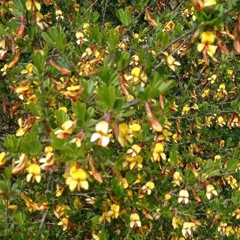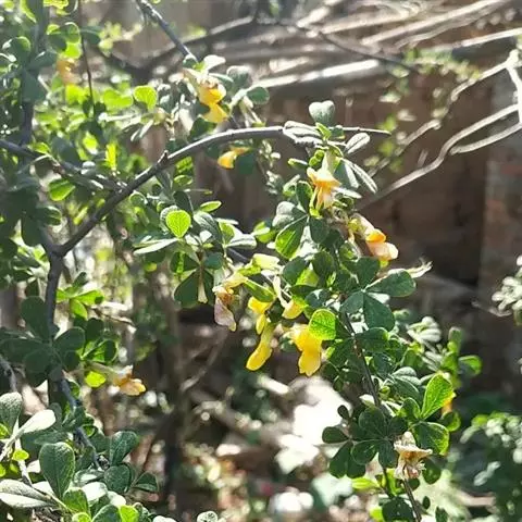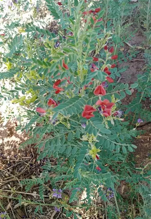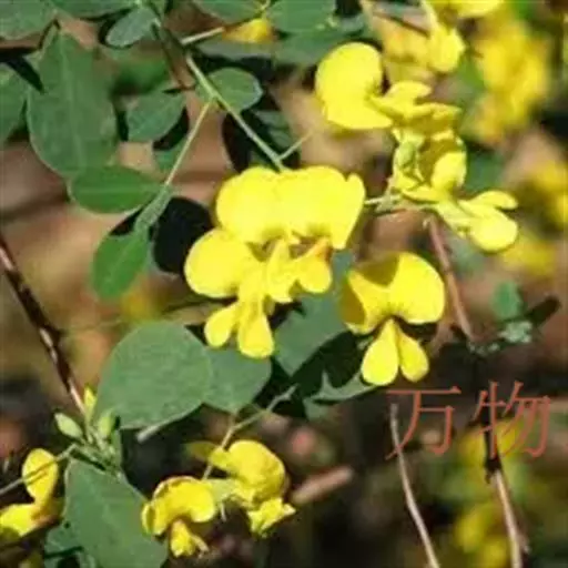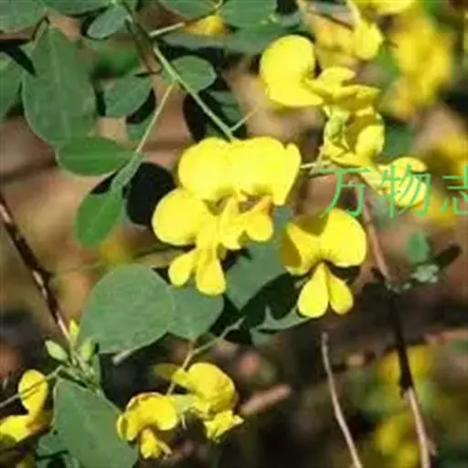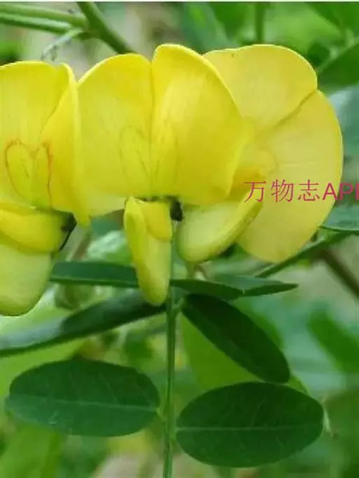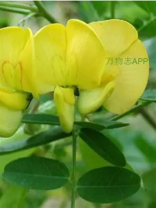 落叶灌木,高1-4米,小枝幼时被细小 白色伏毛;羽状复叶有7-13片小叶,长6-15厘米,叶轴上面具沟槽;托叶三角形、披针状三角形至披针状镰形,长2-3毫米,被白色柔毛。小叶长圆形至倒卵形,长1-3厘米,宽6-15毫米,先端微凹或圆钝,具小尖头,上面绿色,无毛,下面灰绿色,疏生短伏毛,薄纸质,具清楚而分离的脉序。总状花序长达5-6厘米,生6-8花;苞片卵状披针形,长2毫米,先端钝尖,与花梗同被黑褐色或混生白色疏短伏毛;花梗长约1厘米;花萼长约5毫米,萼齿三角形,为萼筒长的1/4-1/3,先端锐尖,外面疏被黑褐色及白色伏毛,萼筒内侧上缘密被灰白色至褐色毛;花冠鲜黄色,旗瓣宽略大于长,长15-17毫米,先端微凹,基部圆,具长2-4毫米的瓣柄,胼胝体新月形,稍隆起,翼瓣长11-14毫米,近基部最宽,宽达4毫米,上部常渐狭,先端钝尖,基部一侧具弯曲的耳,与瓣柄等宽,瓣柄长4毫米,龙骨瓣瓣片半圆形至三角状半圆形,先端宽达11毫米,多少凹入,基部宽5毫米,瓣柄长8-9毫米,耳近三角状半圆形;子房密被短柔毛,花柱弯曲,几与子房成直角,先端内卷,近轴面(内侧)被白色纵列髯毛。荚果长卵形,长6-8厘米,宽2-3厘米,两端尖,带绿色或近基部稍带红色,无毛至近无毛;种子扁,近黑色至绿褐色。花期5-7月,果期7-10月。