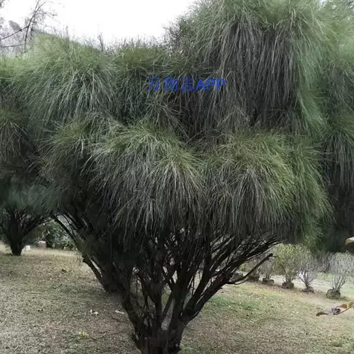 木麻黄 乔木,高可达30m,大树根部无萌蘖;树干通直,直径达70cm;树冠狭长圆锥形;树皮在幼树上的赭红色,较薄,皮孔密集排列为条状或块状,老树的树皮粗糙,深褐色,不规则纵裂,内皮深红色;枝红褐色,有密集的节;最末次分出的小枝灰绿色,纤细,直径0.8-0.9mm,长10-27cm,常柔软下垂,具7-8条沟槽及棱,初时被短柔毛,渐变无毛或仅在沟槽内略有毛,节间长(2.5-)4-9mm,节脆易抽离。