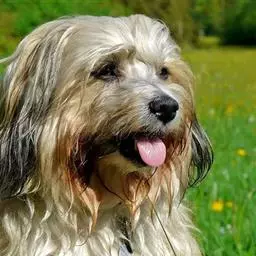 拉萨犬是食肉目犬科犬属哺乳动物。头盖狭窄,黑色的鼻子及丰厚的长毛;两颊胡须及颚部胡须很长;厚实的耳朵下垂;眼古铜色,大小中等,椭圆状;身长比身高长,背部水平,腰部强健;被毛上毛长粗且直,下毛丰厚;沿着背骨,被毛左右清楚分开;四肢以足部由密集丰厚的长毛覆盖着;前肢直,后肢肌肉十分发达;足部坚挺呈圆形,肉趾特别厚;尾毛密集,尾跟高,尾巴朝上卷曲,毛尖容易纠结在一起。寿命为12-14年。拉萨犬原产于中国西藏,现广泛分布于世界各地。吃苦耐劳、个性独立友善、聪明自信、活泼热情、忠心耿耿且沉着冷静,但对陌生人有高度的警觉性。适合饲养在家庭中。不易训练。饲养管理上,需定时修剪会进入眼睛的毛;被毛需要经常擦拭和彻底梳理,以免显得脏污蓬乱。拉萨犬是西藏地区四大名犬之一。1934年,拉萨犬被认定为独立品种。据说饲养此犬者可以增福和驱魔,以前又称“驱魔圣犬”,现在则是非常理想的家庭犬。