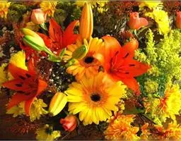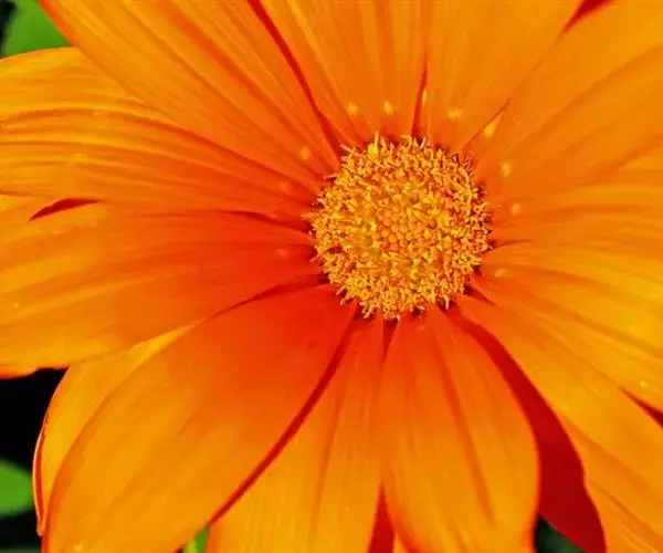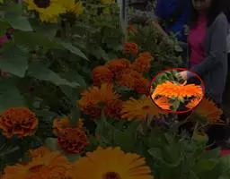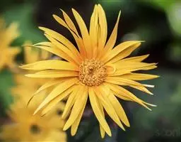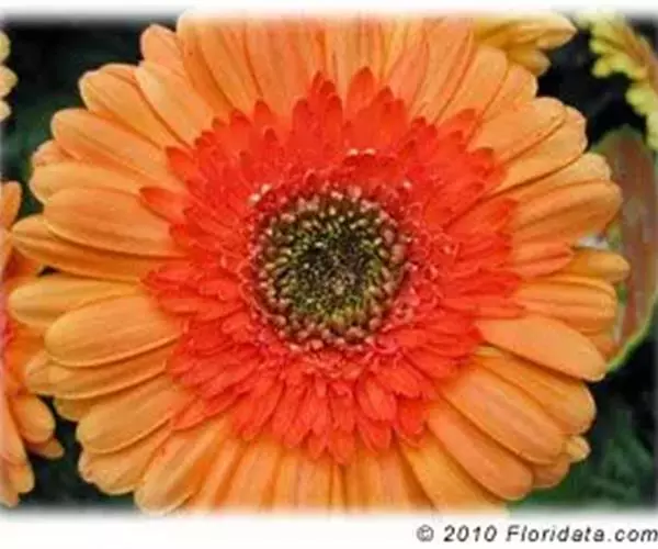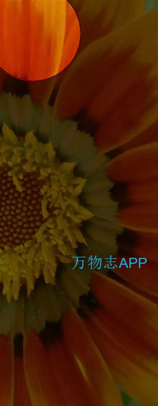 头状花序长13-15毫米,宽23-35 (42) 毫米,单生于茎顶端;总苞半球形,长7-9毫米,宽15-22毫米,总苞片3层,近等长,稍长于花盘,线状披针形,长7-9毫米,宽约1毫米,顶端尖或渐尖,背面被密开展的硬长节毛;外围的雌花舌状,3层,长7.8-12毫米,管部长2.5毫米,被疏贴微毛,舌片开展,平,桔红色,或黄色至红褐色,宽1-1.4毫米,顶端具2-3个细齿;中尖的两性花管状,黄色,长4-5.5毫米,管部长约1.5毫米,檐部窄漏斗形,上半部被疏微贴毛,裂片无毛;花药伸出花冠。