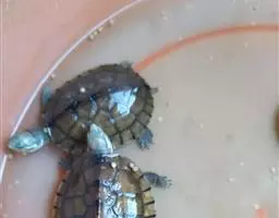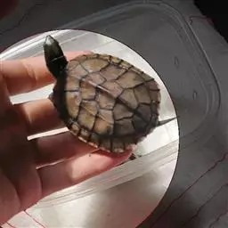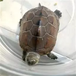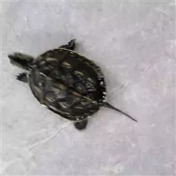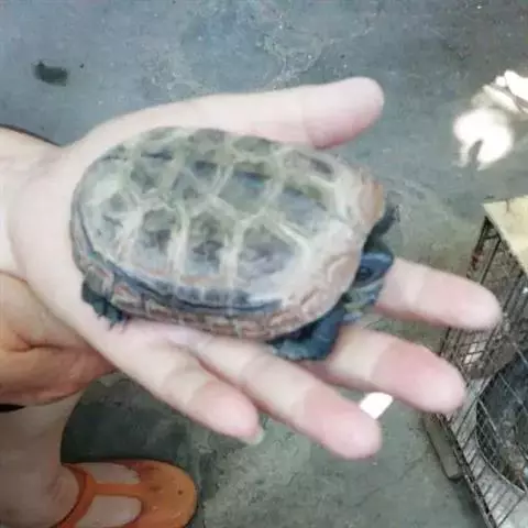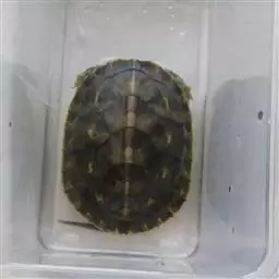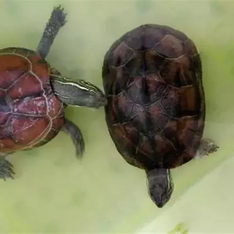 刚孵出的稚龟重4.1-6.9克,背甲长26-35毫米,宽22-27毫米。稚龟出壳后,不应立即取出,让龟在孵化箱内1-2天后,将腹部肚脐完全收缩的龟拿出,放于盆中饲养,水位0.5-1.0厘米。肚脐未完全收缩的则继续留在孵化箱中静养。龟开食后移入幼龟池,水深约50厘米,池内放养浮萍,投喂碎肉、鱼肉等动物性饵料,饵料放置在斜坡上。
