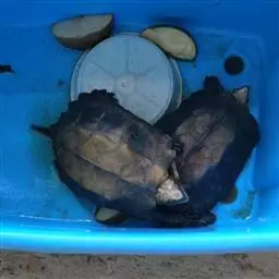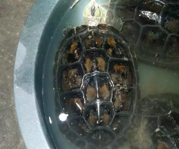 日常饲养管理工作包括巡池、检查吃食状况、增减水位、消毒等。巡池早晚较适宜,每天2-3次;若当天喂食,应查看龟剩余食物情况,结合近期投喂量,评估龟的健康。查看水位和水质,适时排放老水,添加新鲜水,每1-2个月排水2/3,然后再注满,水位保持1.5米左右。消毒药物使用生石灰粉,每月泼洒1次。巡池时注意观察水面和岸边的龟,对长时间不沉水、白天停留岸边、受惊扰后反应迟缓的龟,应及时捞出,检查并采取相应治疗措施。