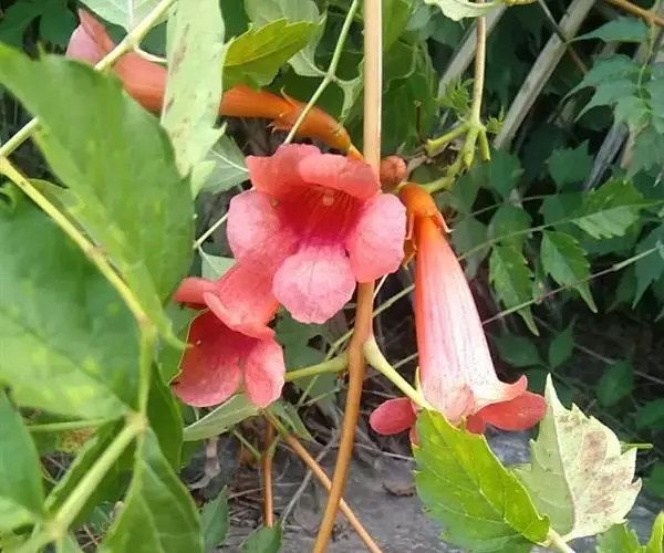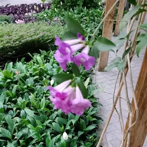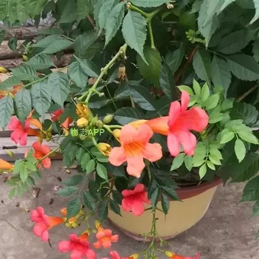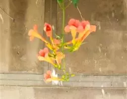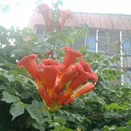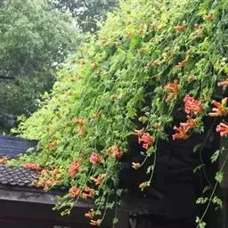 凌霄花为藤本植物,喜攀援,是庭院中绿化的优良植物,用细竹支架可以编成各种图案,非常实用美观。也可通过整修制成悬垂盆景,或供装饰窗台晾台等用。