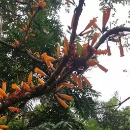 火烧花 Kurz)是紫葳科火烧花属常绿乔木;树皮光滑;叶为奇数羽状复叶对生,小叶卵形或卵状披针形,…