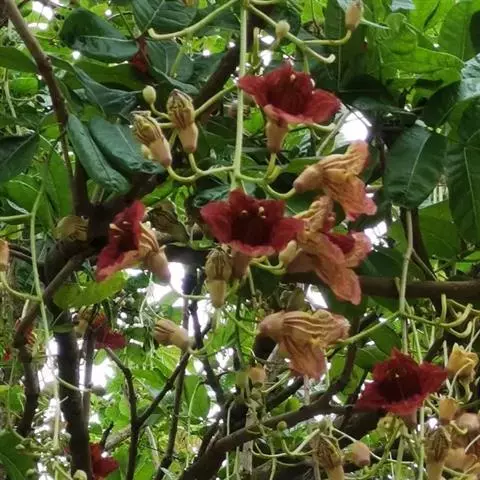 厚萼凌霄 Seem.)是紫葳科凌霄属植物,藤本,具气生根,长达10米。小叶9-11枚,椭圆形至卵状…