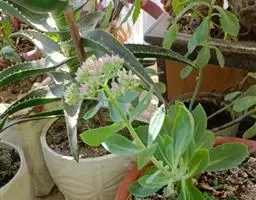 松虫又名天锦星、金钱章,为多年生草本,叶片紧密排列,叶面有淡绿色斑点,植株有粗大的木质茎,容易长侧枝,群生的松虫非常漂亮,花开不太好看,穗状倒钟型小花,五个花瓣,异株授粉。