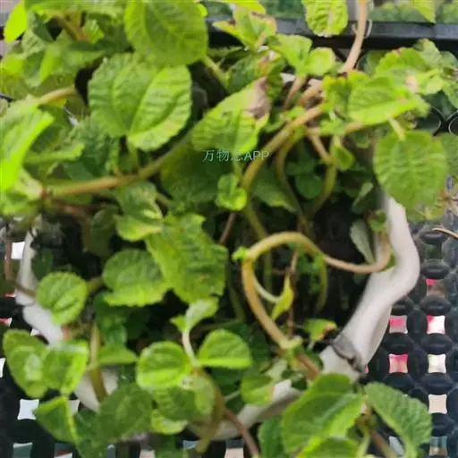 植株匍匐蔓延,分枝多而细,节处着地易生根。叶对生,圆形,叶缘有齿。叶脉凹陷