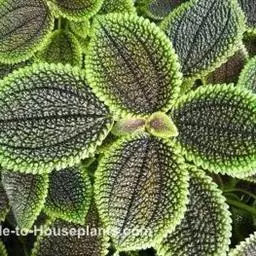 为多年生草本植物,植株匍匐蔓延,分枝多而细,节处着地易生根。叶对生,圆形,径2~3cm,叶缘有齿。叶脉凹陷,脉间叶肉突起,看上去呈泡泡状。花小、不明显。