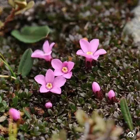 红花岩梅(学名:Diapensia purpurea Diels ),是岩梅科岩梅属的一种常绿垫状平卧半灌木,主要生长在高山灌丛草甸,石上。