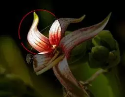 花单生于枝顶端,蔷薇紫色或粉红色,几无梗;萼片5,分离,匙形或长圆形,长5-6毫米,宽1-2.5毫米;花.冠筒部长5-6毫米,圆筒形,檐部5裂,裂片卵圆形,长约6毫米,宽4毫米,先端急尖,尖头钝形,常有5条不甚明显的脉纹;雄蕊5,生,于花冠筒的喉部,花丝宽,基部不呈耳状膨大;退化雄蕊5,短镰状或斜三角形,光滑无毛;子房圆球形,3室,每室具多数胚珠,花柱单一,直立,长4毫米,不伸出花冠筒部,柱头几不膨大。蒴果圆球形,直径2-2.5毫米,连同宿存的萼片长6-7毫米,带褐绿色,宿存萼片纸质或革质,绿色,匙形,内弯,先端钝尖,具3-7条纵脉;果梗粗壮,长5-25毫米,上部在花下面常有1-2枚匙状苞片。花果期6-8月。