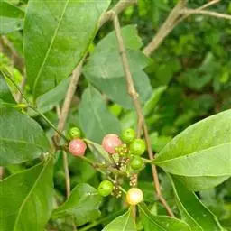 常绿灌木或小乔木。叶椭圆形,两端尖。果扁圆形,朱红色;味甜,可食。产自中国东南部,广东地区大量盆栽。