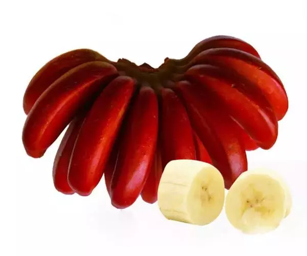 红皮香蕉20世纪70。年代从东南亚引入,属AAA群红绿蕉品种。假茎高3~4米,茎周长67~87厘米,除叶面呈绿色外,假茎、叶脉和中脉均呈暗紫红色。梳数、果数少,果指长17~20.5厘米,果皮暗紫红色,后期带绿条纹,果肉蛋黄色,肉质软滑,有特殊的兰花香味,果实总糖含量为20%~21%。红皮香蕉的产量低,株产10~20千克。该品种易突变为绿蕉,生长期较长,在15个月以上,抗病、抗寒力弱。红皮香蕉虽然缺点多,但由于其果皮为红色,有喜气的意思,不乏市场需求,已有商业化栽培。2003年3月份通过福建省农作物品种审定委员会审定 。