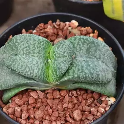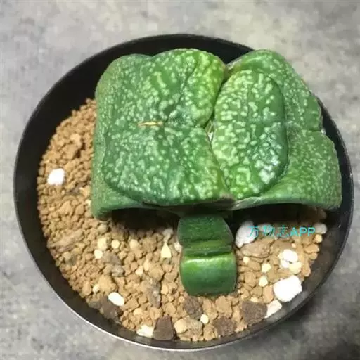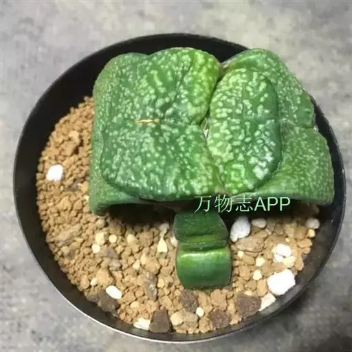 卧牛(Gasteria armstrongii Schönland) 是阿福花科鲨鱼掌属的多肉植物,也是鲨鱼掌属中最具代表性的类群之一。原产地位于南非开普省。叶片厚且质硬,排列紧密,叶面具有许多小疣突,叶色暗绿,生长缓慢,长年摆放形态变化不大。其园艺品种如达摩卧牛、绿星卧牛、卧象等被现已引入我国。