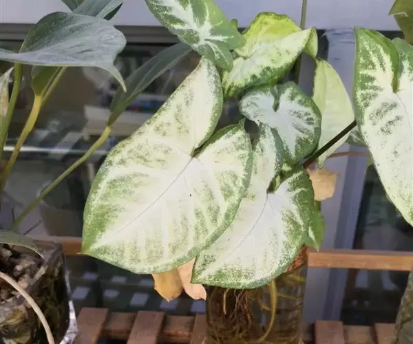 合果芋 ⒈浇水:合果芋是喜湿润怕干旱的植物,在夏季的时候,要对它进行充足的浇水,并且保持盆土的湿润,这样有利于它的茎干生长。在冬季的时候,对合果芋的浇水要减少,它的盆土不能太湿,否则容易造成低温环境下根烂叶枯。