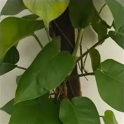 合果芋(学名:Syngonium podophyllum Schott)是天南星科,合果芋属多年生常绿草本植物,合果芋的茎节具气生根,攀附他物生长。叶片呈两型性,箭形或戟形;叶基裂片两侧常着生小型耳状叶片。佛焰苞浅绿或黄色。合果芋一般不易开花。