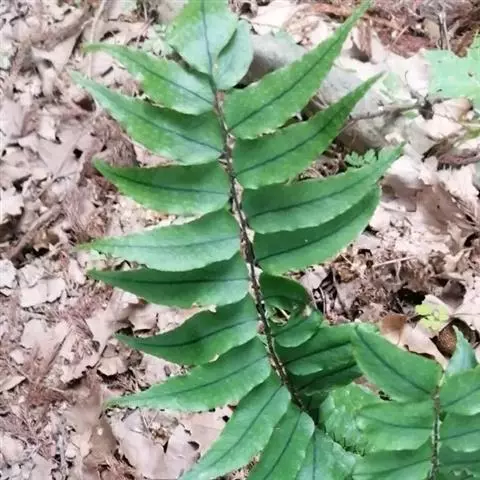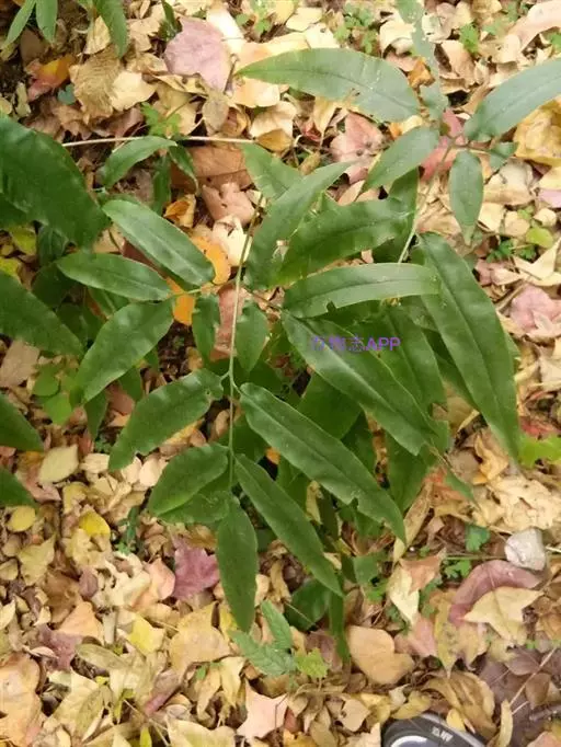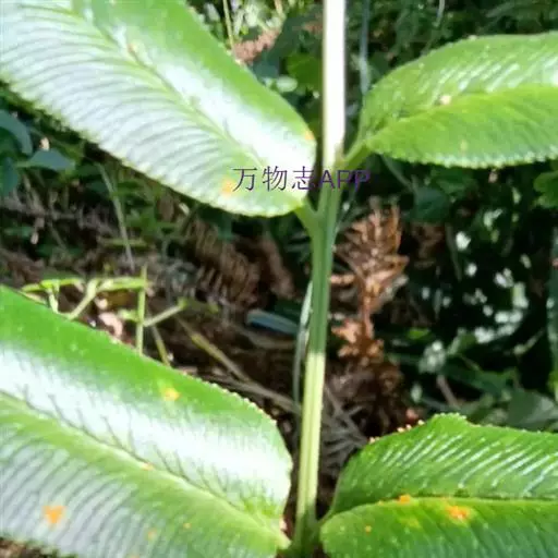又名风丫草。多年生草本,植株高60-120厘米。叶柄长30-50厘米,粗3-5毫米,禾秆色或栗褐色,基部以上光滑;叶片和叶柄等长或稍长,宽20-30厘米,长圆三角形,二回羽状;羽片通常,对(少则3对),基部一对最大,长20-35厘米,宽10-15厘米,卵圆三角形,柄长1-2厘米,羽状(偶有二叉);侧生小羽片1-3对,长10-15厘米,宽1.5-2.5厘米,披针形,有柄或向上的无柄,顶生小羽片远较侧生的为大,长20-28厘米,宽2.5-4厘米,阔披针形,长渐尖头,通常向基部略变狭,基部为不对称的楔形或叉裂;第二对羽片三出、二叉或从这对起向上均为单一,但略渐变小,和其下羽片的顶生小羽片同形;顶羽片较其下的为大,有长柄;羽片和小羽片边缘有向前伸的疏矮齿。叶脉网状,在羽轴两侧形成2-3行狭长网眼,网眼外的小脉分离,小脉顶端有纺锤形水囊,不到锯齿基部。叶干后纸质,上面暗绿色,下面淡绿色,两面无毛。孢子囊群沿叶脉分布,几达叶边。