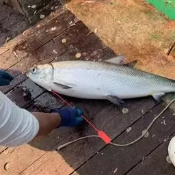 又叫“白鲢”、“跳鲢”、“鲢子”、“鳔鱼”、“地瓜鱼”、“鲢子头”等。淡水鱼。古称鱮,《本草纲目》说:“鱮鱼处处有之,状如鳙而头小形扁,细鳞肥腹,其色最白。”鲢鱼体侧扁,头大而眼小,位 鲢鱼 于头侧中轴下,鳞细,背部灰白,背鳍顶端及尾鳍稍黑。鲢鱼自然资源分布很广,常见于长江、珠江、淮河、钱塘江和黑龙江水系,长江的中下游和珠江的西江河段最密集。鲢鱼与青鱼、草鱼、鳙鱼一样,是我国四大家鱼之一,人工养殖遍布全国,产量居首位。由于鲢鱼常生活于大江河水深浪大之处,所以在钓鱼活动中所占的位置并不那么重要,并非是渔人垂钓的主要对象。鲢鱼以水中的浮游植物为主要食饵,吃食方式与通常的鱼不同,是通过一口一口地汲水把水中的浮游植物吸入口中,通过鳃耙把水排出,浮游生物则留在口中,咽入胃里。鲢鱼既不吃属于万能钓饵的蚯蚓,也不吃肉丁、螺肉、河虾等荤饵。鲢鱼特别喜欢酸甜味道的馊饵周围浑浊的饵雾,渔人只要在酸甜的馊饵雾里埋藏钓钩,鲢鱼在吸食可口的馊雾时,就会将利钩吸入口中而被钩住,这就是钓取鲢鱼的秘法。钓鲢鱼常用的饵料有粉状干诱饵:麸皮、豆饼粉、玉米粉、次粉各25%,将其混合拌匀,不加任何佐料;菜籽饼、 鲢鱼 豆饼粉干撒饵,用菜籽饼50%、豆饼粉50%两者拌匀,不加任何佐料。酸味湿诱饵,用豆制品业的下脚料豆腐渣、食品业的豆汁渣、酿造业的醋糟各三分之一。钓饵常用二合一酸饵,用玉米面75%、麸皮25%,掺和蒸成窝窝头,趁热掰开揉碎。也可用三合一酸饵、豆饼、麸皮、玉米面各三分之一,豆饼和麸皮炒香,玉米面蒸成窝窝头。还有香甜味糟食,细麸皮 50%、玉米面 20%、面粉20%、糕点粉10%,混合拌匀,带干粉到钓场,取池塘水打湿攥成饵团。此外还有腥味酸饵,水剂钓鲢鱼饵,香味菜籽饼饵等。香味菜籽饼是将菜籽磨细,用煮熟的米饭与菜籽饼粉50%拌匀,反复揉捏,使饵有粘性。钓鲢鱼的技法很多,效果较好的技法有:水底馊饵埋钩钓、水体中间悬浮定位飞钩钓、空钩闪电提拉钓、手竿浮钓法等4种。