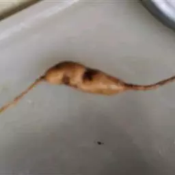【症状】病鱼十分瘦弱,头大尾小,体色暗淡无光泽,脊柱向背部弯曲,使尾部上翘。病鱼离群在水面狂游急窜或旋圈打转,不时跳出水面,复又钻入水中,反覆多次,终致死亡,死时头常钻入淤泥中。剖腹后,可见肝、脾萎缩,腹腔积水,剖开脑壳,露出脑部,可见白色颗粒状胞囊,取下孢囊,在显微镜下可见大量孢子。
