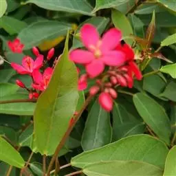 金英常绿灌木,株高约50-160厘米,嫩茎红色。叶片绿色,对生,椭圆形,先端尖,基部楔形,全缘。…