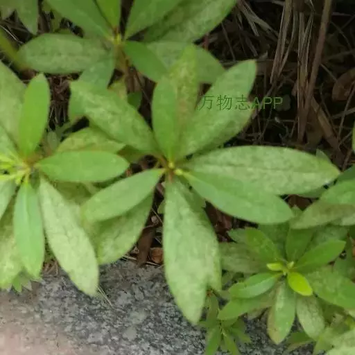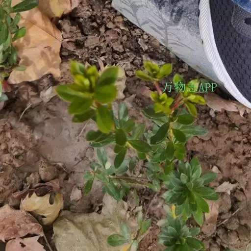 落叶灌木,高2(-5)米;分枝多而纤细,密被亮棕褐色扁平糙伏毛。叶革质,常集生枝端,卵形、椭圆状卵形或倒卵形或倒卵形至倒披针形,长1.5-5厘米,宽0.5-3厘米,先端短渐尖,基部楔形或宽楔形,边缘微反卷,具细齿,上面深绿色,疏被糙伏毛,下面淡白色,密被褐色糙伏毛,中脉在上面凹陷,下面凸出;叶柄长2-6毫米,密被亮棕褐色扁平糙伏毛。