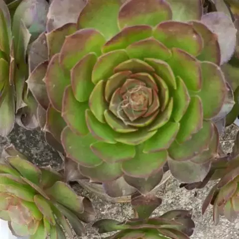 本属植物为灌木状,茎分枝或不分枝。肉质叶在茎顶端排列成莲座状,叶缘和叶面有毛。总状花序高大,花后全株枯死。全属大约40种,基本分布在北非和加那利群岛等地。