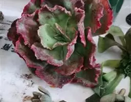 红缘莲花掌属蔷薇目、景天科植物,原产大西洋的加那利群岛。质厚,蓝绿色,被白霜,叶缘红褐色。聚伞花序,…