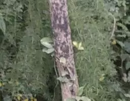 蔓发病初期节部产生油浸状褪色裂纹,并分泌出胶脂。病情严重时,蔓上裂纹部位出现爆裂,主蔓基部裂开口还会流出灰、红色胶状液体,俗称“爆血管”;侧蔓裂开后,产生白色油状物。部分植株出现生长发育缓慢或停止生长;重者全株死亡,蔓干燥后呈赤褐色。