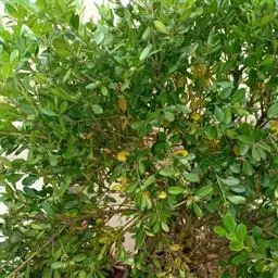 2.白藻病。发病初期叶面上出现灰白色至黄褐色小圆斑点,后逐渐扩大成放射状或纤维状纹理,表面呈褐色天鹅绒毛状而稍隆起,后期变成灰白色平滑病斑。防治方法:应注意通风透光,雨后及时排水;染病后可喷洒50%托布津500倍液防治。