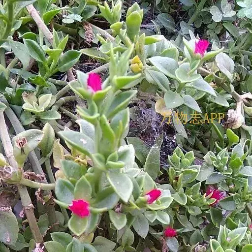 多年生常绿草本。茎斜卧,铺散,长30-60厘米,有分枝,稍带肉 心叶日中花 质,无毛,具小颗粒状凸起。