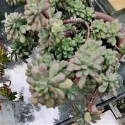 区别一、看杆!这个是区别八千代和乙女心最重要的地方,之前一些文章讲到什么头大头小、什么带粉不带粉,都不如看杆子来得明显。乙女心它怎么长也是个肉质杆,八千代则是显赫的木质杆,杆上的纹理非常明显!乙女心的茎杆是嫩的、绿的;八千代的茎杆是像有树皮一样的,老的、黄的。
