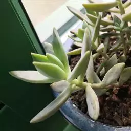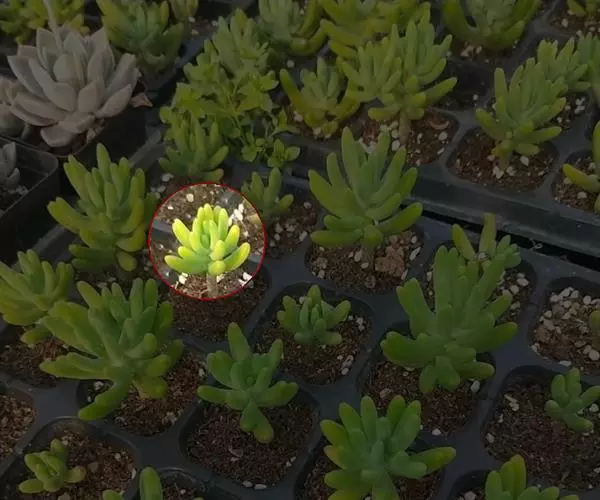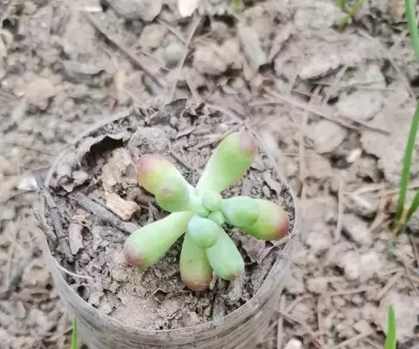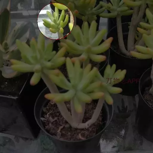 区别二、刚发出的小株也能明显区别!乙女心小株是典型的叶片头大尾小,而且颜色偏青!八千代就算是刚出的小株也是木质杆。而且叶片是头小尾大,颜色偏黄的。
