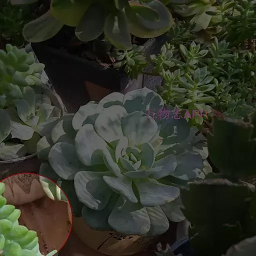 4. 八千代叶片光滑无粉,乙女心叶片有薄薄一层蜡质白色霜粉覆盖。