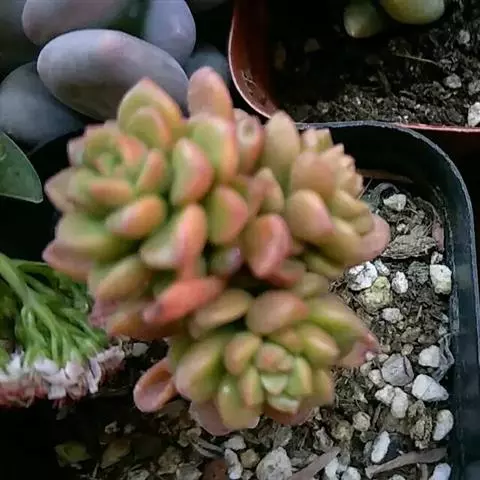 区别四、乙女心爱暴侧芽,容易有很多小崽,侧芽刚长出来是粉白粉白的;八千代基本不暴,侧芽出来基本就是绿的。