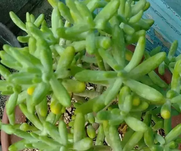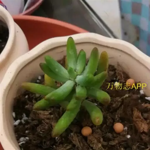 玉米石是景天科、景天属植物。多年生草本多浆植物。植株低矮丛生,多分枝。叶膨大成圆筒形、卵形或近小球形,…