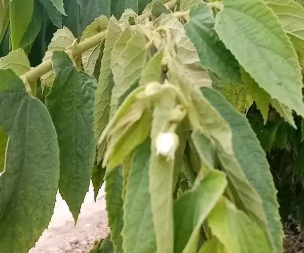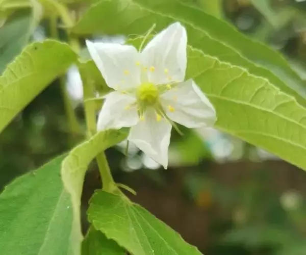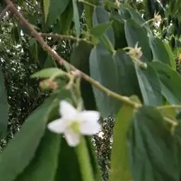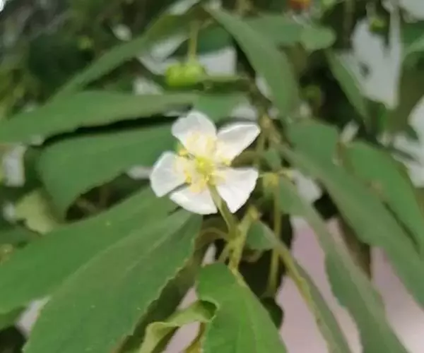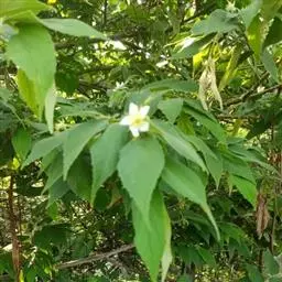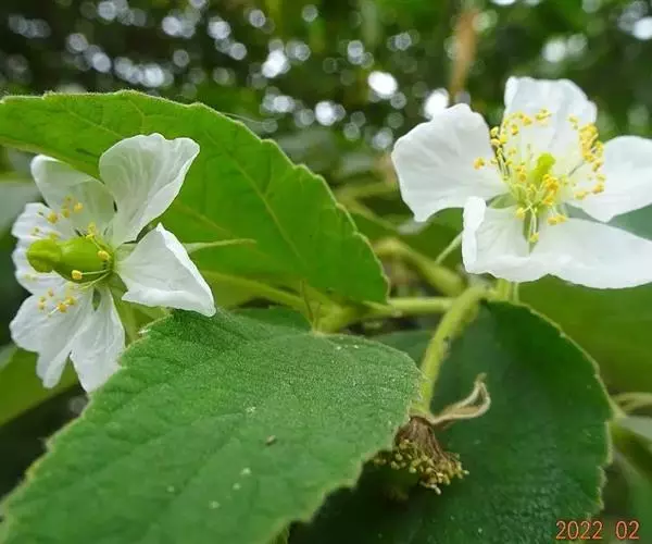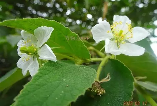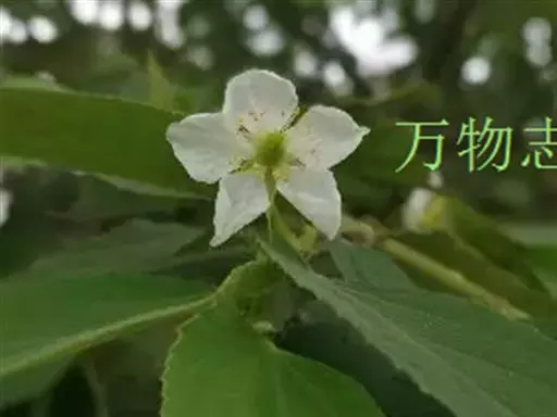 常绿小乔木,高达5~8m。树皮光滑较薄,灰褐色。小枝及叶被短腺毛,叶片纸质,单叶互生,长圆状卵形,长4~10cm,宽1.5~4cm。掌状,先端渐尖,基部斜心形,3~5主脉,叶缘中上部有疏齿,粮棉油星状绒毛。花两性,单生或成对着生于上部小枝的叶腋花萼合生,萼片5枚,分离,长10~12mm,宽约3mm,两侧边缘内折而成舟状,先端有长尾尖,开花时花萼反折。花期长,花瓣5枚,白色,倒阔卵形,具有瓣柄,全缘。先端边缘波状,长10~11mm,宽约9mm,雄蕊多数,子房无毛,5~6室, 每室有胚珠多枚。柱头 5~6 浅裂, 宿存。花盘杯状。盛花期3~4月,周年有果成熟,6~8月为果熟期。果实多汁浆果,球形或近球形,直径约1cm。成熟时为红色,无毛,内含种子。种子椭圆形,极细小 。