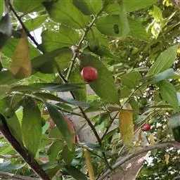 果实:全年结果,和花期一致。2~4月果较少,其余时间较多;4~9月果实在成熟变成紫红色才凋落,10 月至翌年2月果实多数变黄色后凋落。单个果实从发育到成熟约30~40天,直径约1cm, 果形甚是可爱,且果实味甜,深受游人欢迎。同时,可以吸引大量鸟类前来觅食,为优良的招鸟植物 。