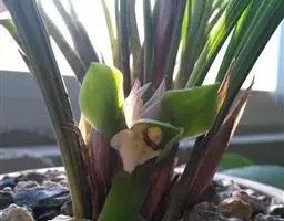喉红石斛:附生。茎丛生,直立,粗短,近棒状纺锤体。叶2-4枚,生于茎顶。总状花序顶生,花序轴长5-…