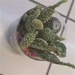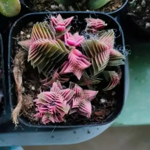 灯美人是景天科的园艺品种,多肉植物。叶片近柱状,丛生,在日照时间长、温差大的环境下会呈现橙粉色。