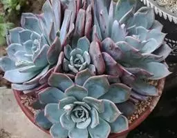 蓝石莲是景天科、拟石莲花属的多肉植物。茎部粗壮,成熟植株茎部木质化。叶片莲座型密集排列,株径不会很大,…