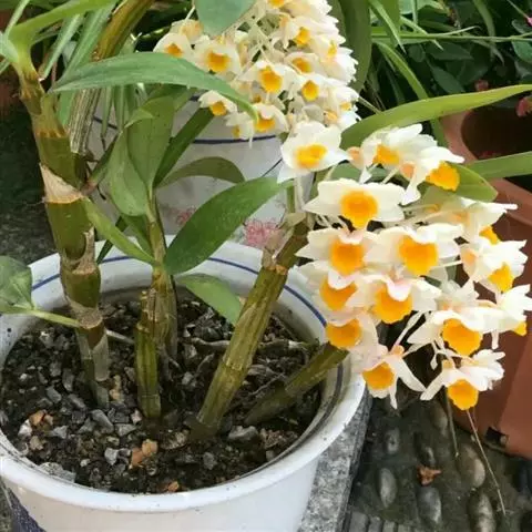 球花石斛,是兰科石斛属的多年生附生草本。茎直立或斜立,圆柱形,粗壮,基部收狭为细圆柱形,不分枝,…