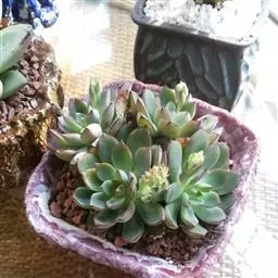 女雏是景天科石莲花属的多肉植物。特征是小巧的株形和橙粉色叶缘。极易生侧芽,…