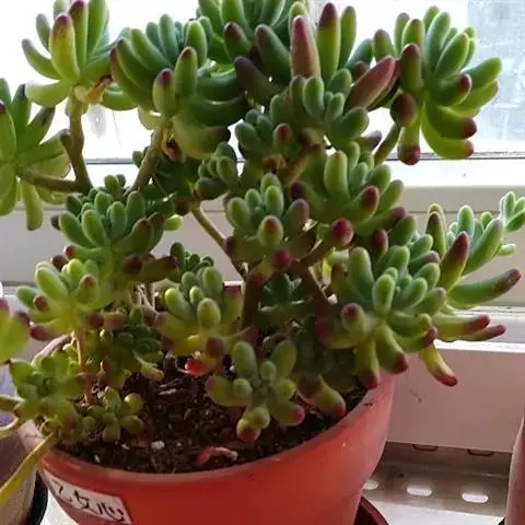 玉缀,别名翡翠景天景天科景天属常绿或半常绿多肉植物。植物匍匐下垂,翠绿色。叶小,多汁,纺锤形,、密…