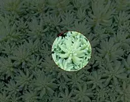 薄雪万年草别名矶小松,景天科景天属多年生草本植物,其细小的蓝绿色棒状叶片环绕生长于茎端,…