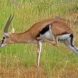 阿拉伯沙瞪羚:是偶蹄目、牛科、瞪羚属的食草动物。头尾长97厘米,身高约55-60厘米。…